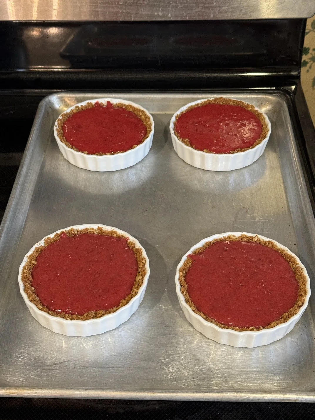 Note: I wanted to compare my take on the tart with the traditional recipe so I made four small tarts with 2 of my recipe take and 2 of the traditional recipe. That’s why you’ll see in all the pictures four small tarts. However, the recipe below will give instructions as if making it in one tart pan. If you want to split it into separate smaller versions, you can.