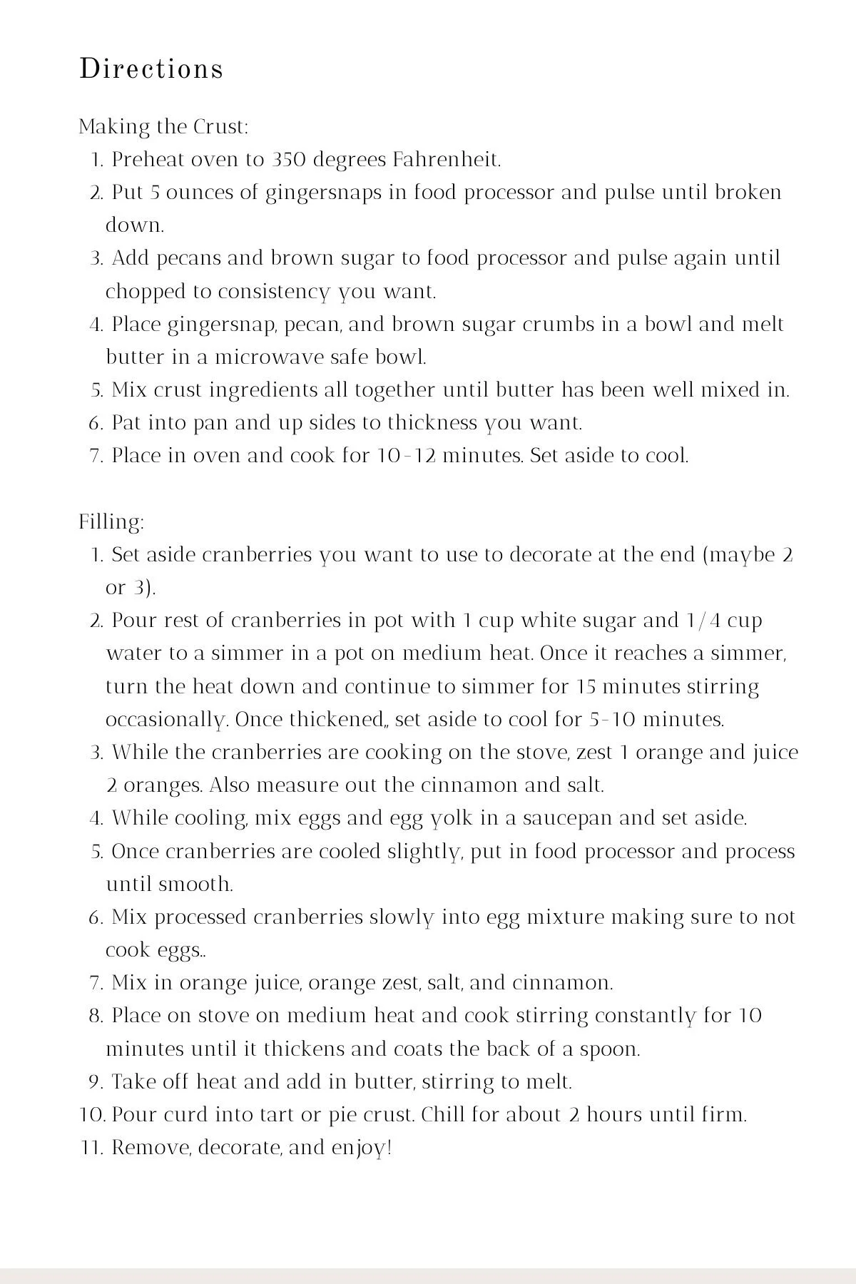 When looking into the cranberry tart (the original dessert), I realized that there were several recipes out there for the same recipe. And there was one with a very slight variation. But I couldn’t find one with any orange in it, which I love with cranberries. Well, next thing I knew I was making my own to try and combine some of the flavor of the tart with the yummy flavors of cranberry sauce.